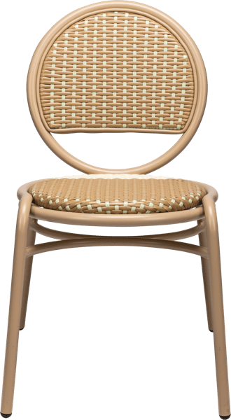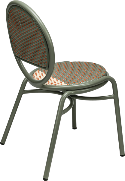 A friend with a twist! Always ready for a good time. Ami looks like one smooth line but appearances deceive. This cheerful aluminium outdoor chair with patterned weave in three bold colourways is a modern interpretation of the classic Café de Paris style. Choose from: Eucalyptus – Cayenne – Ivory, Cardamom – Blush Pink – Ivory or Café Latte – Urban Mint – Ivory. This terrace favourite breathes atmosphere charm and joie de vivre. Designed with love by Nathalie Schellekens.
