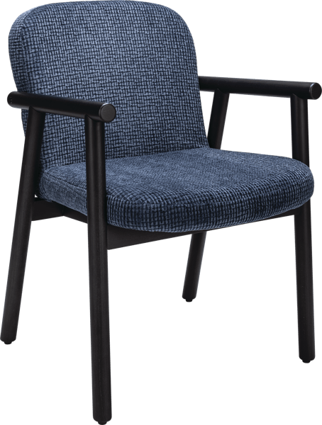 Ruma has a bold character with its sleek stick-frame in oak or beech. Alongside the inviting lounge version there’s now a comfortable armchair. Strong lines give this chair a powerful silhouette yet once seated it reveals its soft and welcoming side. Perfect for dining talking and sharing ideas. Solid beechwood frame stain in your choice and upholstered in your choice of fabric.